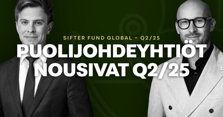 Vuoden toinen kvartaali oli erittäin vahva Sifter-sijoittajille, nousten 6,9 %. Vuoden alusta rahaston R-luokka on noussut 16,4 %, I-luokka 16,5 % ja PI-luokka 16,7 %.