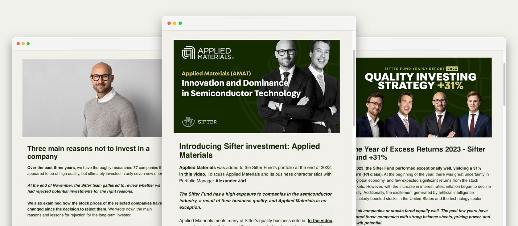 In our newsletters, we share our thoughts how we invest in quality companies globally. Subscribe to the Sifter newsletter and receive: