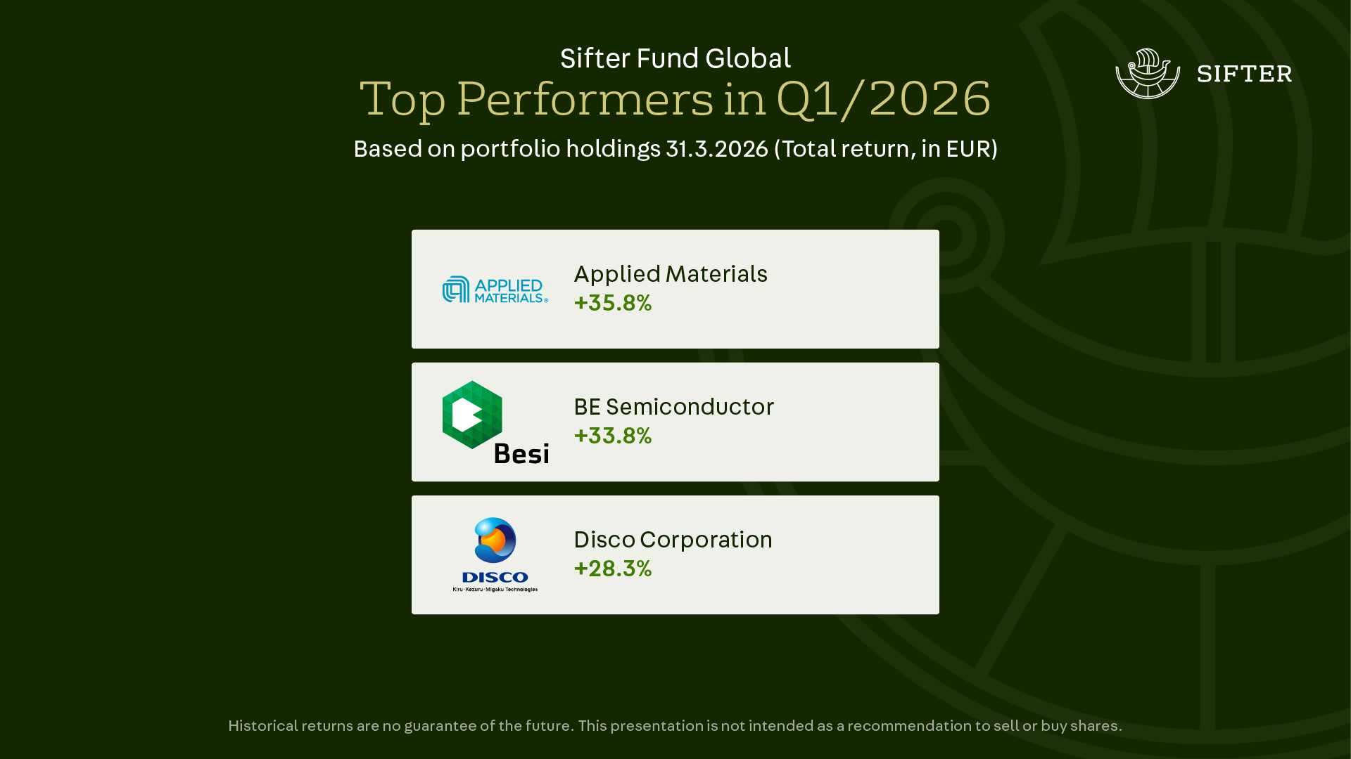 Sifterillä oli kvartaalin alussa noin 20 % painotus puolijohteiden laitteet ja materiaalit -alasektorille. Vertailuindeksissä vastaava paino on noin 2 %.