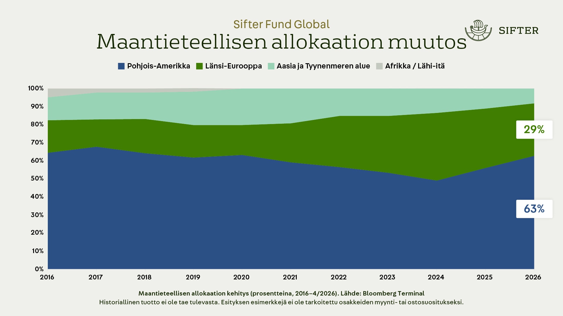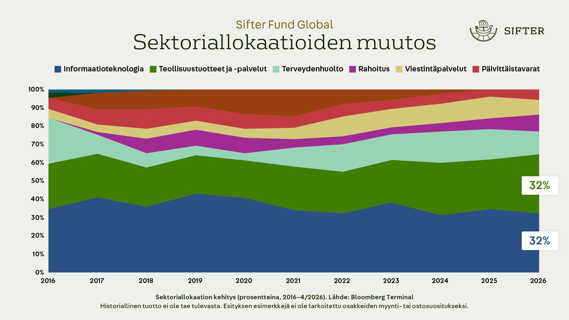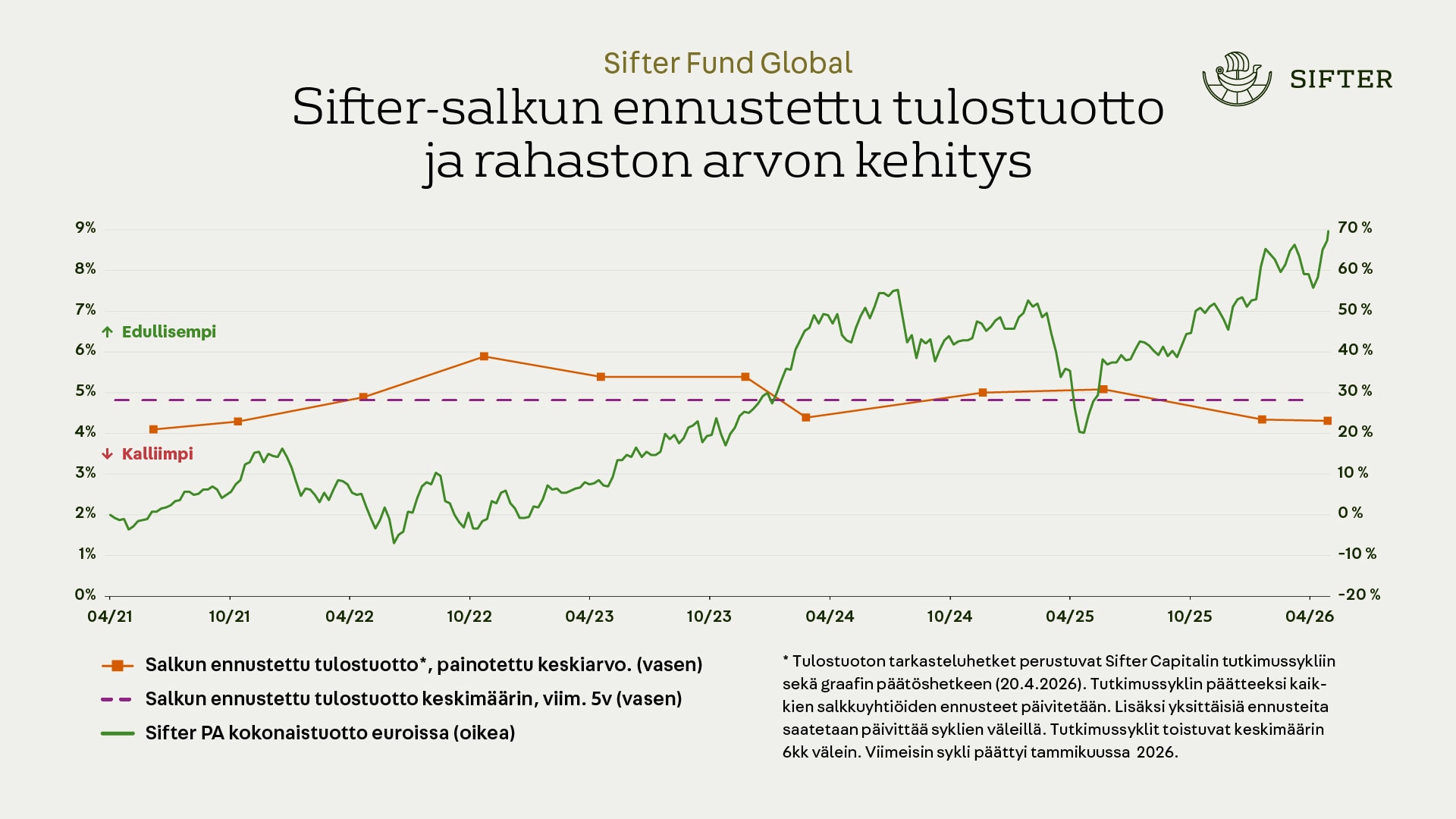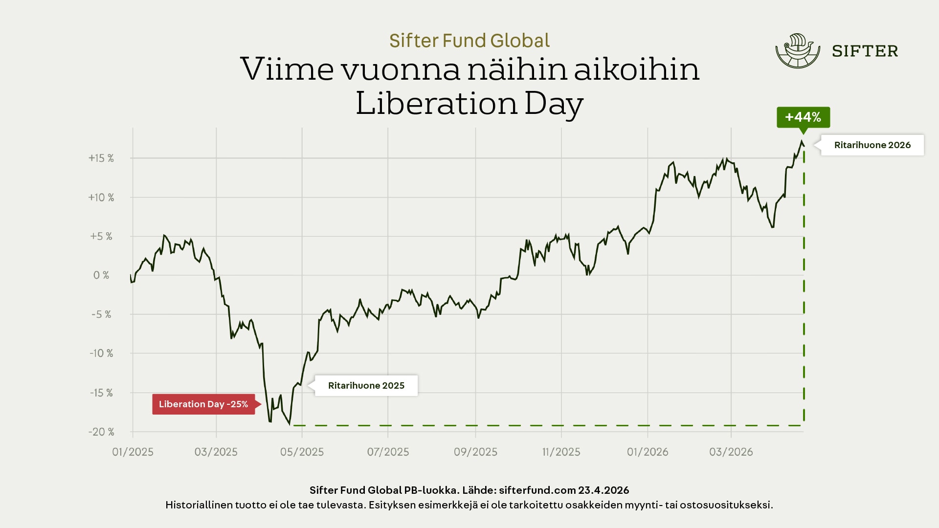 Tilanne on kuitenkin tasaantunut, ja Sifter on noussut noin 11 % vuoden alusta (28.4.2026). Vaikka monista romahduksista on noustu väkevästi ylös, niin on hyvä kuitenkin muistuttaa, että historiallinen tuotto ei ole tae tulevasta.