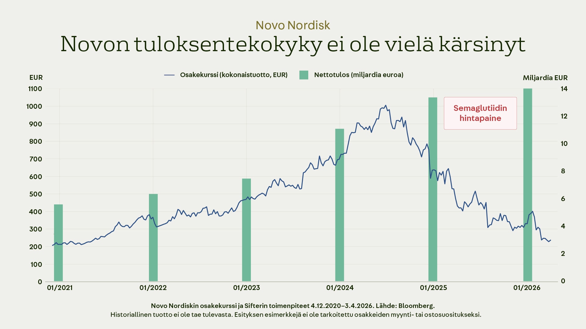 Sijoitimme Novoon vuonna 2020. Yhtiö oli silloin diabeteslääkkeiden vakaa markkinajohtaja, joka oli juuri tuonut markkinoille uuden GLP-1-lääkkeen.