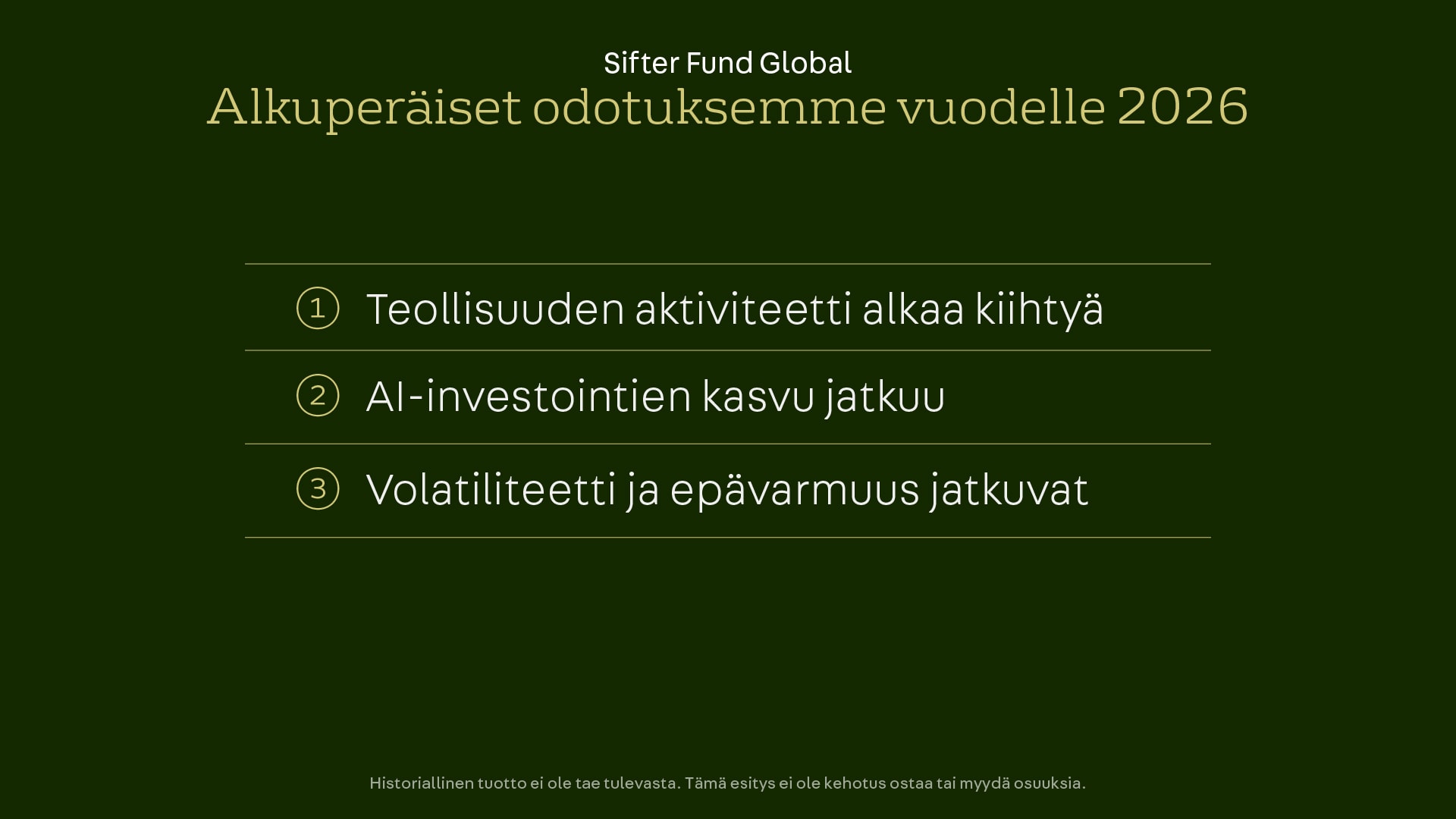 Sifter pärjää parhaiten markkinassa, jossa korot pysyvät vakaina ja nousu laajenee pois muutamasta megacapista – tällöin laadukkaat teollisuus- ja teknologiayhtiöt saavat tukea.
